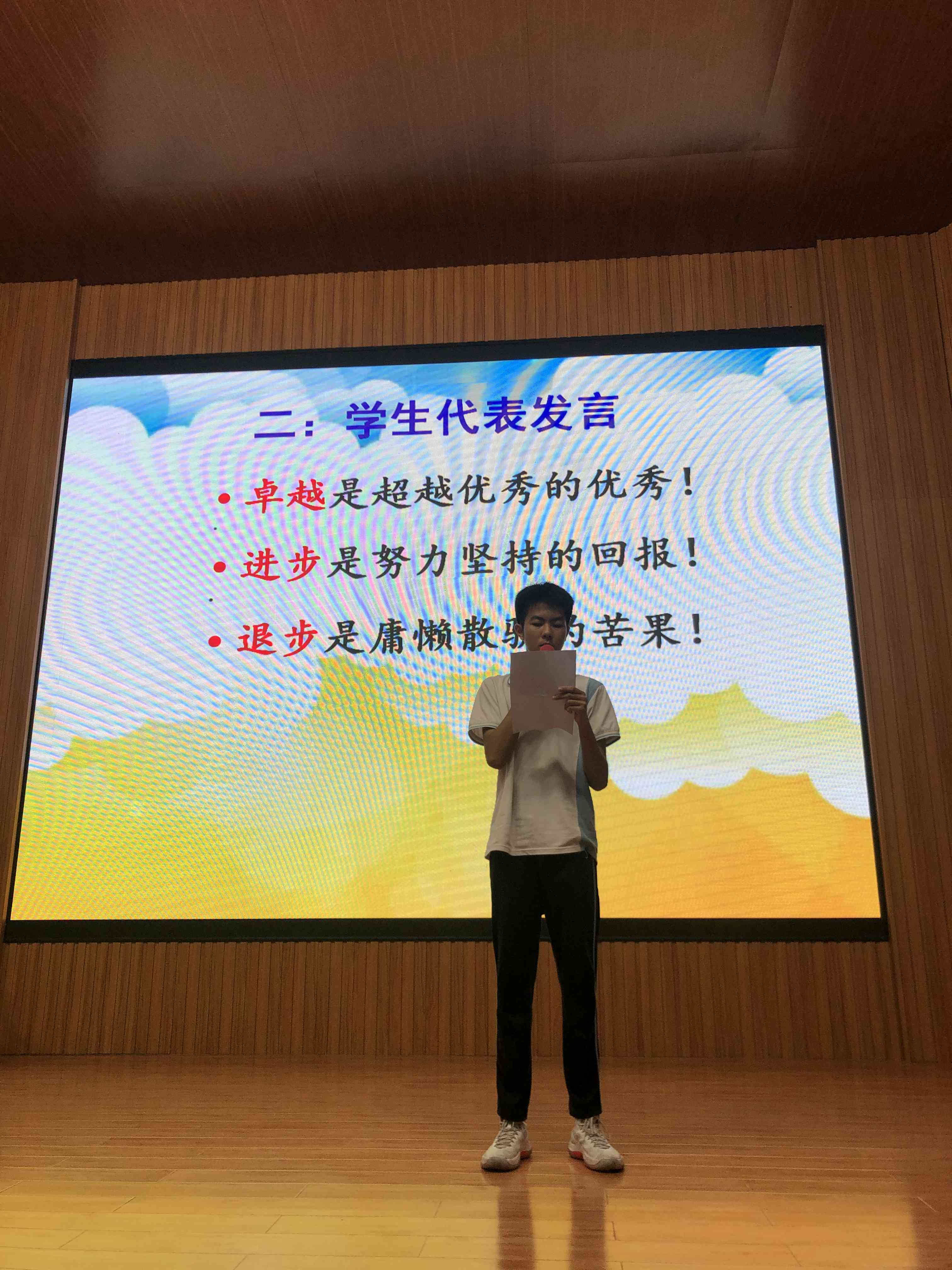 頒獎結(jié)束,由周文杰副主任發(fā)言,他首先向受到表彰的同學(xué)表示熱烈的祝賀,肯定他們優(yōu)異成績的同時,更堅信以他們的實力與水準(zhǔn)。保持不驕不躁的態(tài)度,必定會在此次中考創(chuàng)造更大的奇跡!拼搏七月,奮進(jìn)全力,舍我其誰,容外必勝!