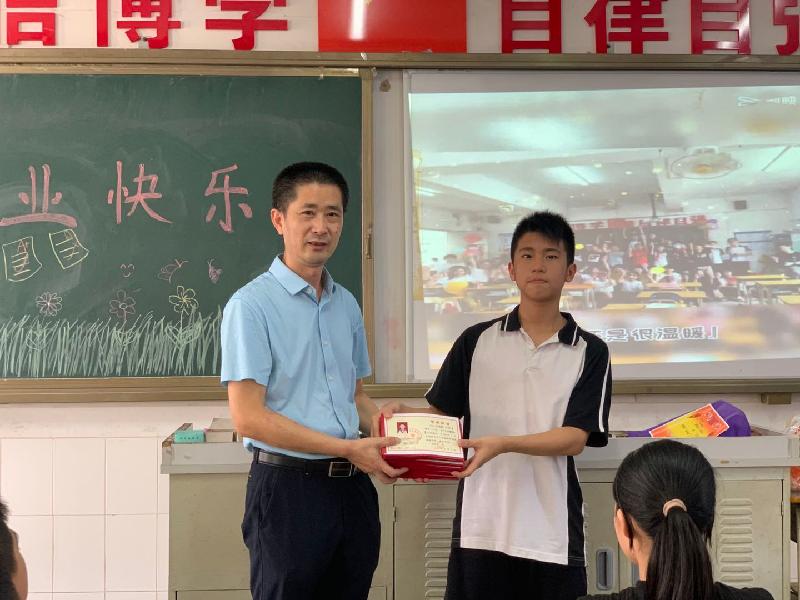 在即將離開母校的時刻,全體畢業(yè)生再一次聆聽可親可敬的曾校長殷殷囑托:“記得六年前校園繽紛落葉,難忘畢業(yè)季七月似火驕陽。為了你們心中的遠(yuǎn)方,南環(huán)用最溫暖的目光相送……你們的童年與南環(huán)有最美的相遇!同學(xué)們,你們每個人都收到了學(xué)校發(fā)放的《畢業(yè)季留言紀(jì)念冊》,打開它,同學(xué)們就看到了八個大字:‘追逐夢想,不負(fù)韶華’,‘韶華’是最美好的時光,請你們努力奮進(jìn),不負(fù)你們最美好的時光!” 隨后,曾校長鄭重地為學(xué)生代表們頒發(fā)畢業(yè)證書。六年來,陪著孩子們一同成長,一路收獲的老師們也來見證孩子們的幸福時光。這是一群不忘初心,獻(xiàn)身教育的老師們!