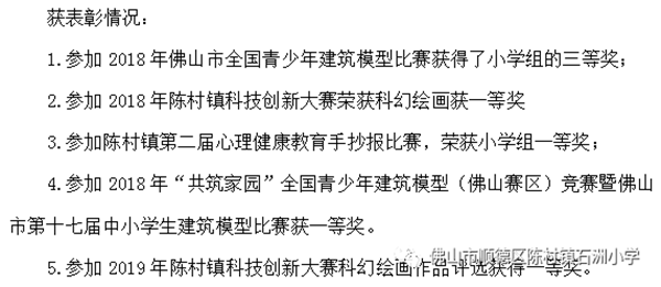 仇賢斌同學(xué)學(xué)習(xí)興趣廣泛,樂(lè)于助人,關(guān)心集體,是老師的得力助手。他撰寫(xiě)的征文在廣東省“我和我的祖國(guó)”主題教育活動(dòng)中獲得三等獎(jiǎng);曾獲順德區(qū)“我的校園我的家”微征文比賽人氣獎(jiǎng);陳村鎮(zhèn)科技創(chuàng)新大賽科幻繪畫(huà)比賽獲一等獎(jiǎng);石洲村小學(xué)生繪畫(huà)比賽三等獎(jiǎng);連續(xù)4年被學(xué)校評(píng)為“陽(yáng)光少年”、“陽(yáng)光班干部”。