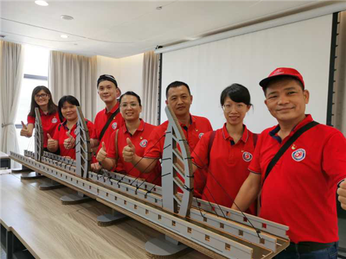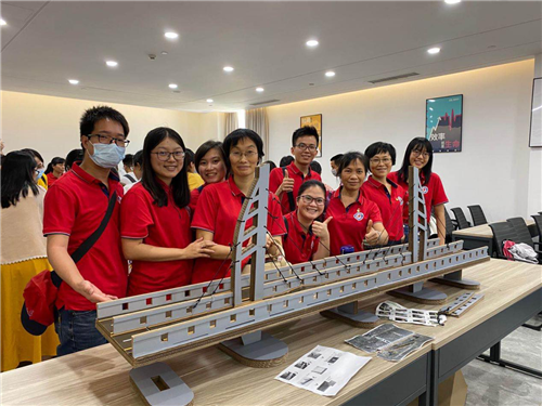 在導(dǎo)游的帶領(lǐng)下,黨員教師們首先實地參觀了建造基地。隨后在會議室,聆聽《港珠澳大橋與灣區(qū)橋梁亮點》講座,了解大橋建設(shè)工作和運營情況,學(xué)習(xí)建設(shè)者不怕困難、自主創(chuàng)新的精神。最后分組搭建港珠澳大橋模型,在模型的搭建過程中更充分地感受這項世界級的超級工程的偉大,充分感受中國建造的力量之雄偉。