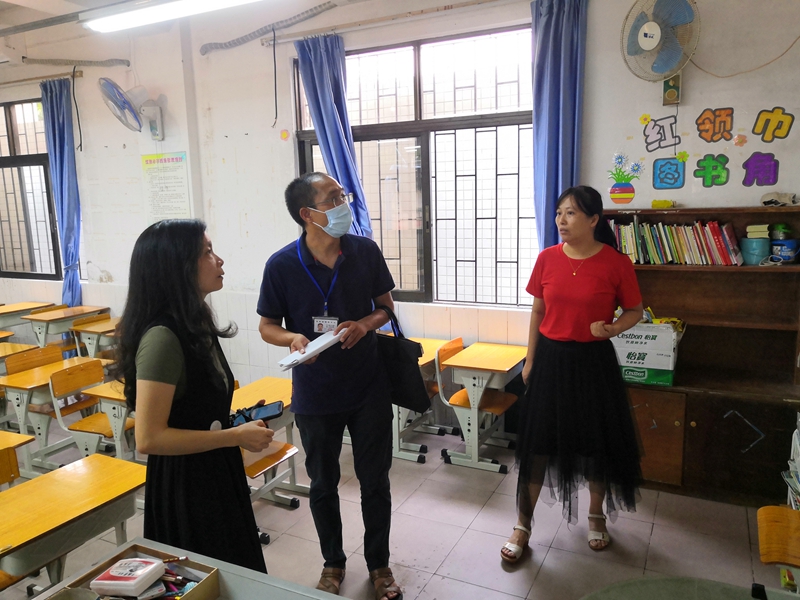 2020年8月13日上午,容桂街道教育局歐陽效斌副股長蒞臨紅旗小學指導”創(chuàng)文”工作。紅旗小學全體行政班子陪同檢查。