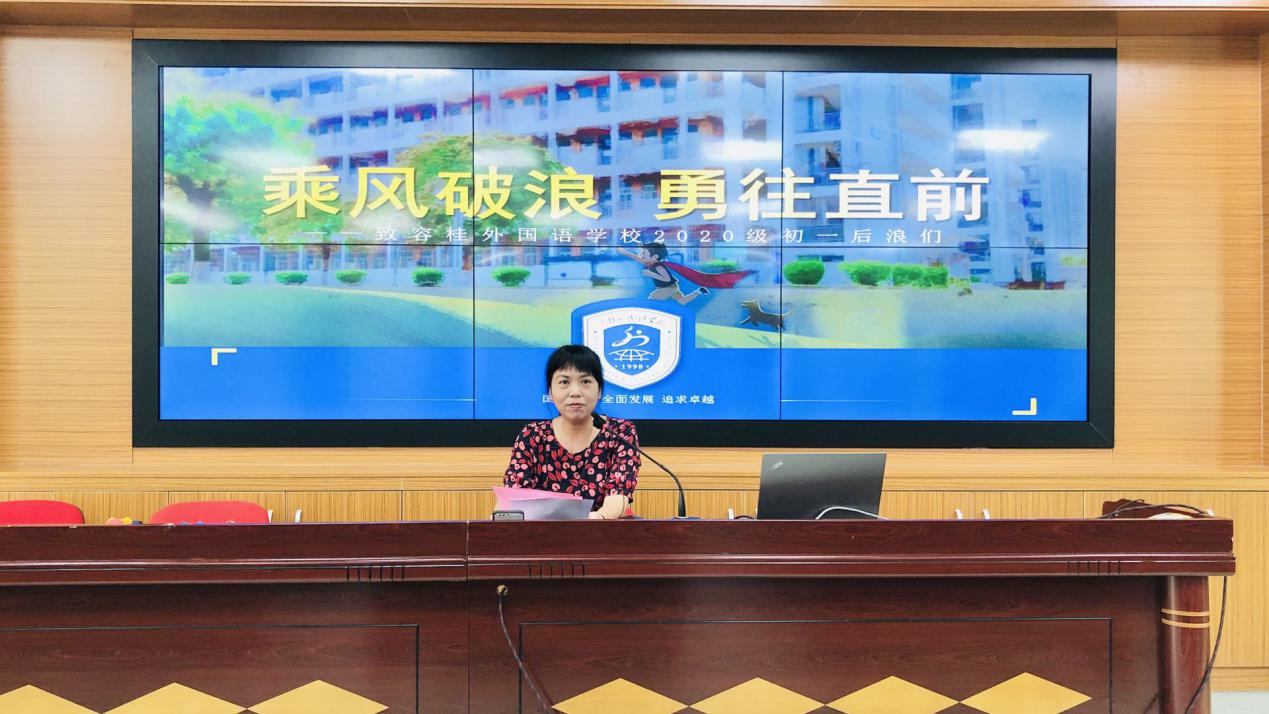 活動的最后,周倩文副校長以直播的形式,給全體初一新生作了一番講話。她對2020級新同學的到來表示熱烈歡迎,同時也對學校的規(guī)章制度作了進一步詳細的說明。她充分肯定了同學們今天的表現(xiàn),對同學們?nèi)旰笕〉脙?yōu)異的成績充滿了信心。