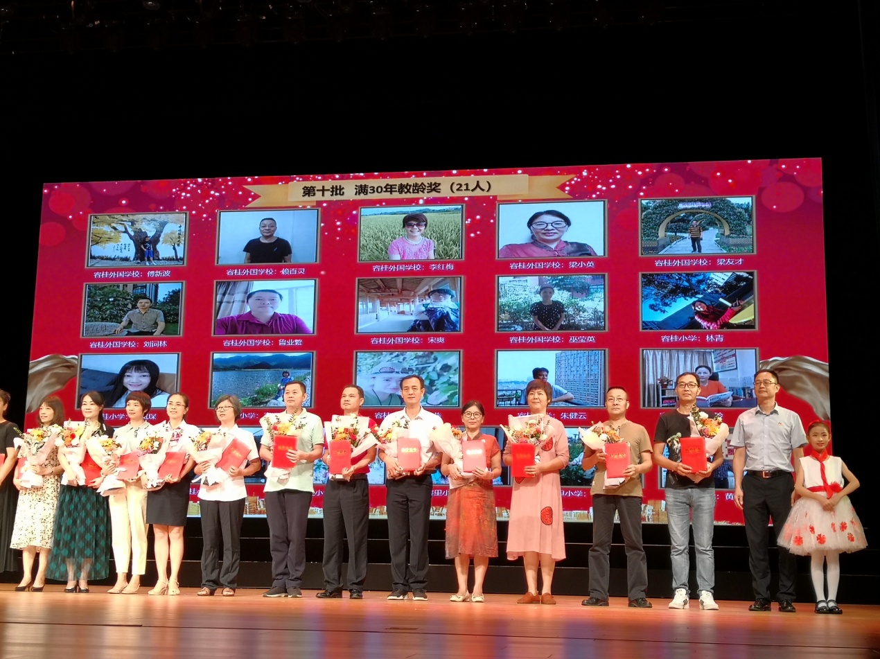 傅新波、賴百靈、李紅梅、梁小英、梁友才、劉詞林、魯業(yè)繁宋爽、巫瑩英榮獲“滿三十年教齡獎”