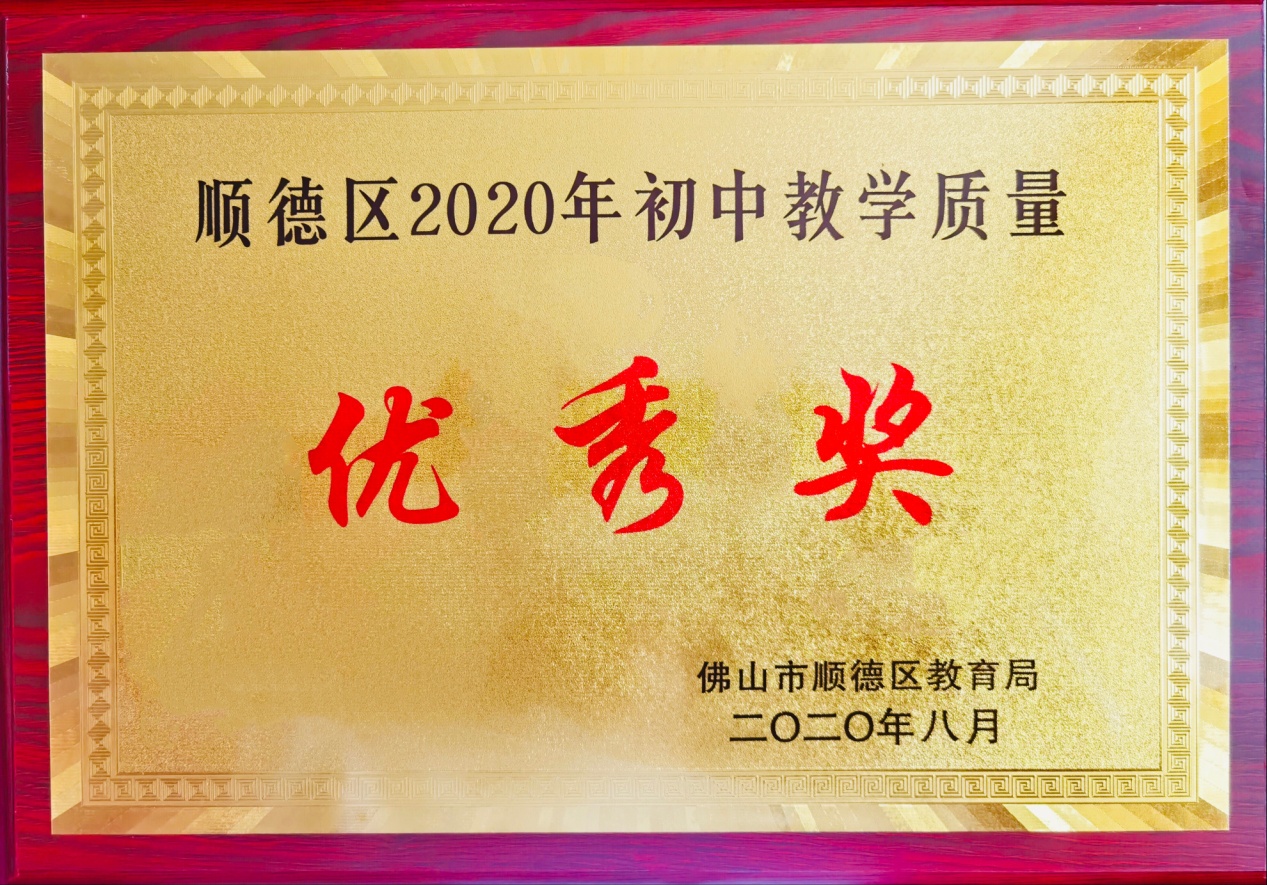 容桂外國語學校榮獲順德區(qū)“初中教學質(zhì)量優(yōu)秀獎”