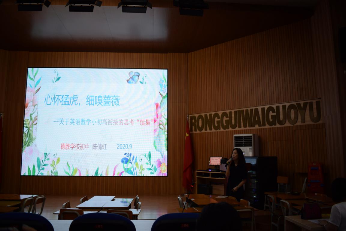 為了更好地幫助在座的小初高教師理解當(dāng)前英語(yǔ)小初高銜接的現(xiàn)狀與潛在問(wèn)題,促進(jìn)銜接學(xué)段英語(yǔ)教學(xué)質(zhì)量的提高,來(lái)自順德德勝學(xué)校的陳倩虹老師進(jìn)行了分享經(jīng)驗(yàn)發(fā)言。