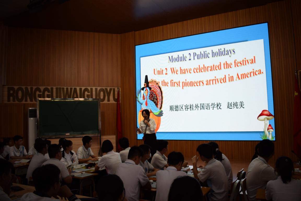 在課例展示環(huán)節(jié),由來(lái)自容桂外國(guó)語(yǔ)學(xué)校的趙純美老師及羅定邦中學(xué)的許冬霞老師,對(duì)初三上冊(cè)Module 2 Public holidays Unit 2這一課進(jìn)行了初高中同課異構(gòu)的教學(xué)展示,分別為我們展現(xiàn)了不同的教學(xué)思維和教學(xué)課堂。