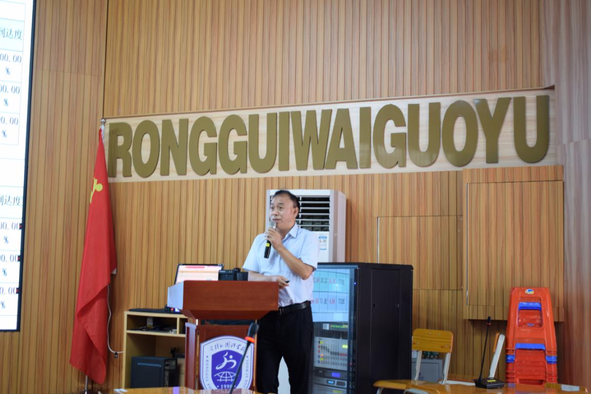 本次會(huì)議的承辦學(xué)校容桂外國(guó)語(yǔ)學(xué)校副校長(zhǎng)周劍山進(jìn)行致辭,他表示,一所學(xué)校的發(fā)展離不開(kāi)教研,高質(zhì)量教研活動(dòng)的開(kāi)展至關(guān)重要,熱烈歡迎教育同仁的到來(lái)。