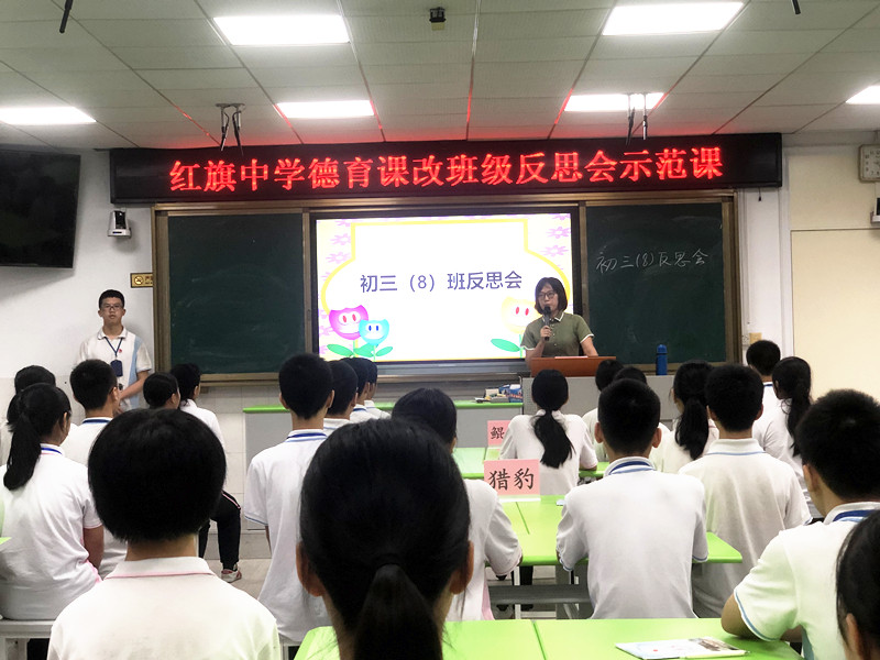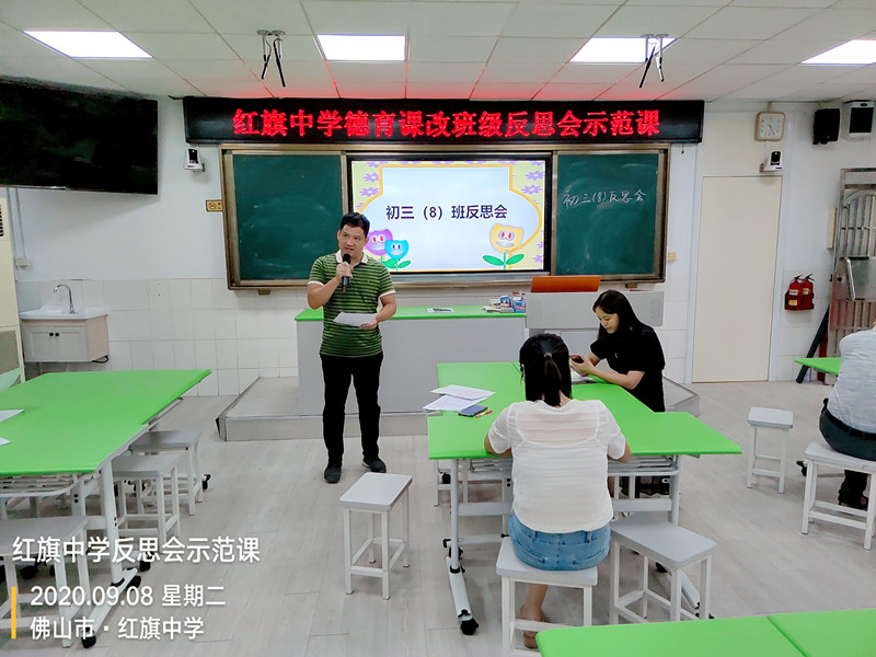 2020年9月8日下午,紅旗中學(xué)全體班主任齊聚錄播室觀摩了譚志霞老師的德育課改反思會示范課,德育處陳國佳副主任主持了課后的分享交流會。陳亞玲校長等學(xué)校主要行政領(lǐng)導(dǎo)參加了活動。