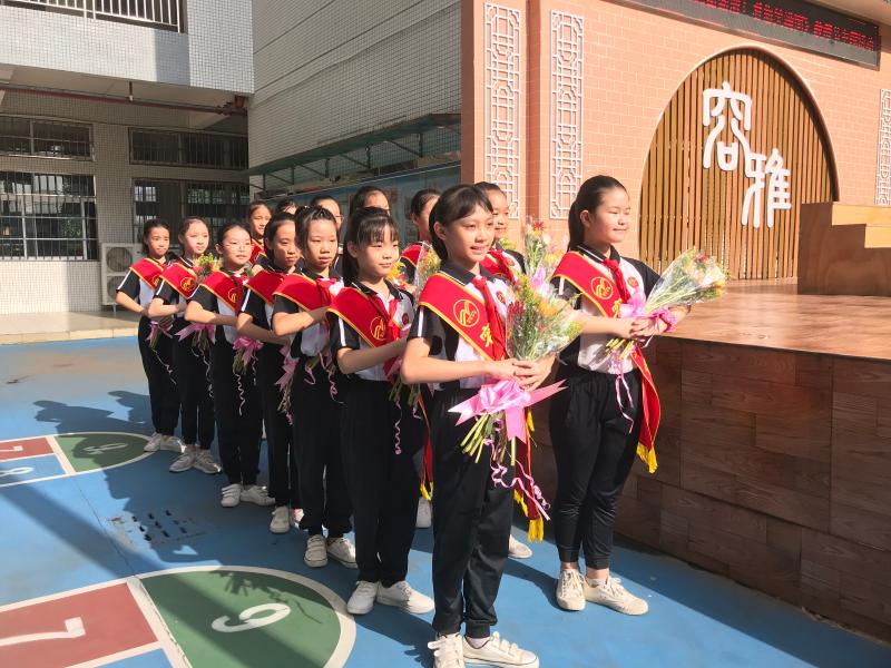 之后,活動迎來“給辛勤的園丁”獻花環(huán)節(jié)。首先,是彭海云校長為容邊小學退休的吳校長獻上美麗的鮮花,感謝他半輩子用心做教育,做學生的引路人。接著,容邊小學容雅禮儀隊隊員為各科組老師們依次獻花,并由彭海云校長為全體老師頒發(fā)教師節(jié)紀念賀卡。最后,彭海云校長為“三十年教齡”的老師馮城發(fā)副校長和李綺雯副校長獻上獻花,感謝他們?yōu)榻逃聵I(yè)奮斗了三十年,付出了自己的青春,辛勞耕耘。