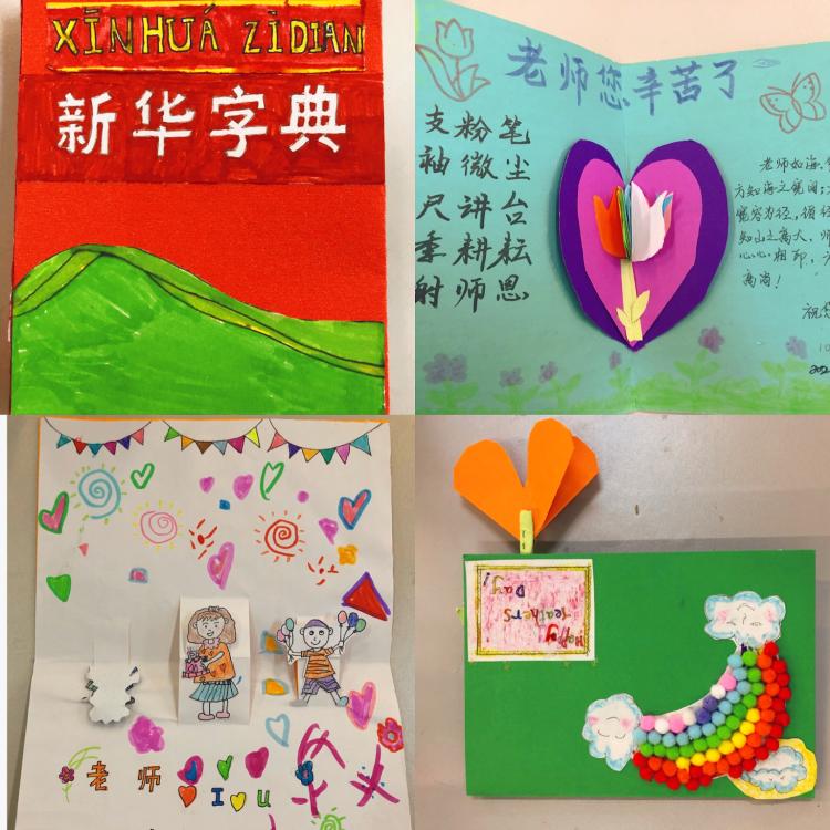 “張張賀卡傳真情,句句祝福暖師心”,活動的最后,各年級的優(yōu)秀賀卡制作者到舞臺上展示他們的精美賀卡。他們利用周末親手制作,花式多樣,極具創(chuàng)造力,小小的賀卡附上了他們濃濃的謝意,并在這個特殊的節(jié)日送給了自己喜歡的老師們。