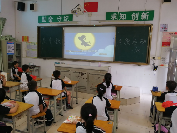 一年級的小朋友認真聽著老師講授中秋神話傳說、中秋民俗故事,孩子們聚精會神地盯著老師,時而眨眨眼、時而抿抿嘴,仿佛自己也要飛到月亮上去了。還以詠月盼月為主題,多種形式讀小詩,唱歌謠,歡聲笑語洋溢在溫馨的教室里。