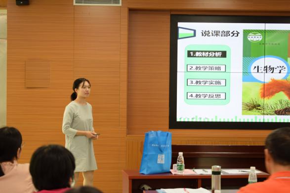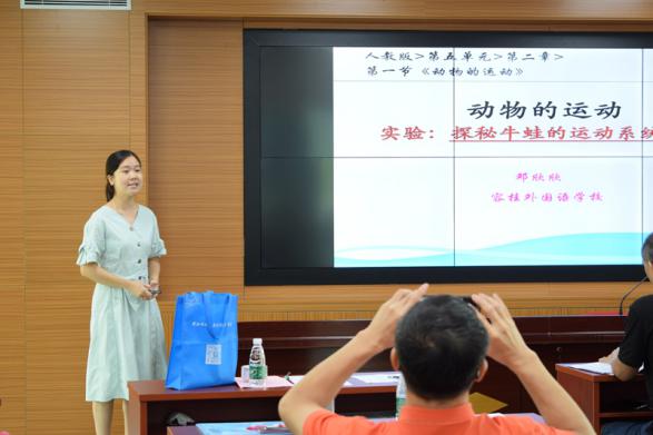 來(lái)自容桂外國(guó)語(yǔ)學(xué)校的鄧欣欣老師,說(shuō)課題目為八年級(jí)上冊(cè)的《探秘牛蛙的運(yùn)動(dòng)系統(tǒng)的組成》,說(shuō)課過(guò)程充滿激情,通過(guò)創(chuàng)設(shè)多個(gè)教學(xué)情境和豐富多彩的活動(dòng),激發(fā)學(xué)生的探究欲望。