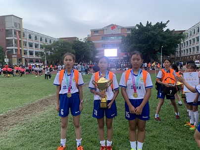 其中我校三名足球隊員譚倩怡、唐詩羽、楊欣怡憑借自身強(qiáng)硬的本領(lǐng)被抽調(diào)參加容桂代表隊。譚倩怡等三位同學(xué)既是學(xué)校足球隊隊員,同時也是我校田徑隊的優(yōu)秀成員。由于今年順德區(qū)足球比賽和容桂街道田徑比賽時間較接近。因此在這段時間里他們既要代表容桂參加區(qū)的足球訓(xùn)練又要參加學(xué)校的田徑訓(xùn)練,但是三位優(yōu)秀的運(yùn)動員從未喊過一聲苦,堅持每天訓(xùn)練,發(fā)揚(yáng)拼搏精神,追逐自己的夢想。