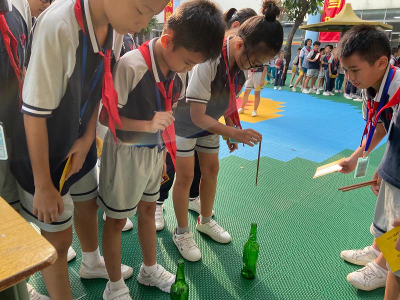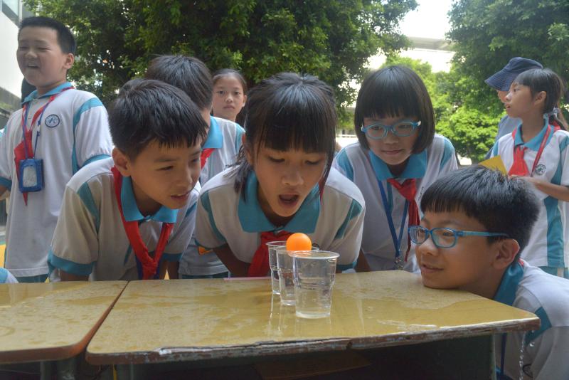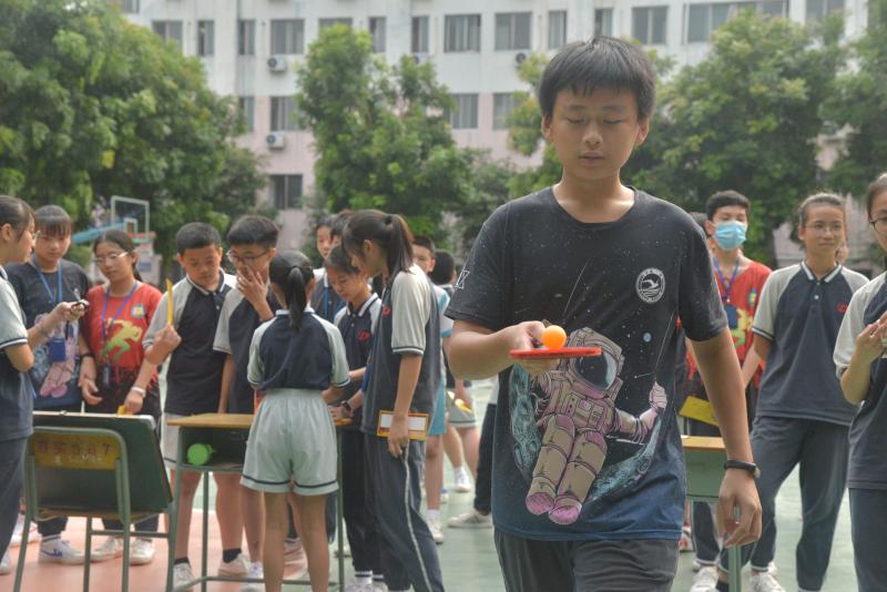 滑溜溜的乒乓球和玻璃珠總是不受控制的掉落,讓參與者甚是懊惱。圍觀的同學(xué)則屏息凝視,生怕干擾了比賽結(jié)果。