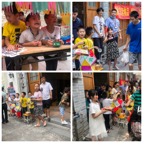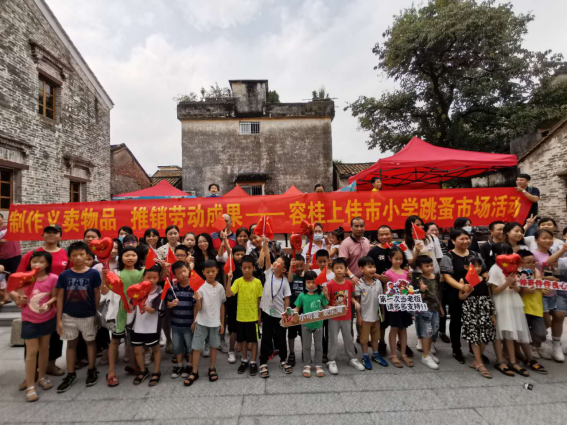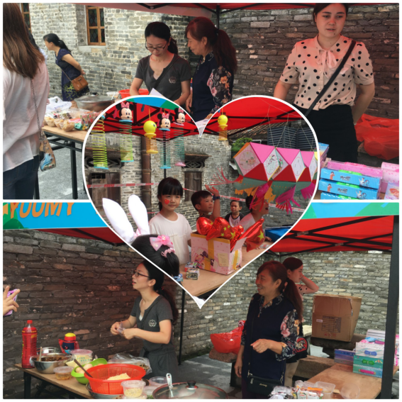 9點整,隨著七彩氣球破繭而出、直沖云霄,云里墟正式啟動。作為本次墟市的重頭戲之一,上佳市小學(xué)在楊連生故居內(nèi),開展公益跳蚤市場活動。學(xué)生與家長們齊動手,制作義賣物品,推銷自己的勞動成果。有賣各種食品的、有賣燈籠的、有賣各種飾品的、有賣書本文具的......各種商品,琳瑯滿目。一群可愛的小朋友不斷吆喝,想盡辦法把自己的物品推銷出去,真正體驗了一次“小鬼當(dāng)家”做老板的滋味。這里成了歡樂的海洋,賣家與買家各取所需,我淘我樂,溫情傳遞。