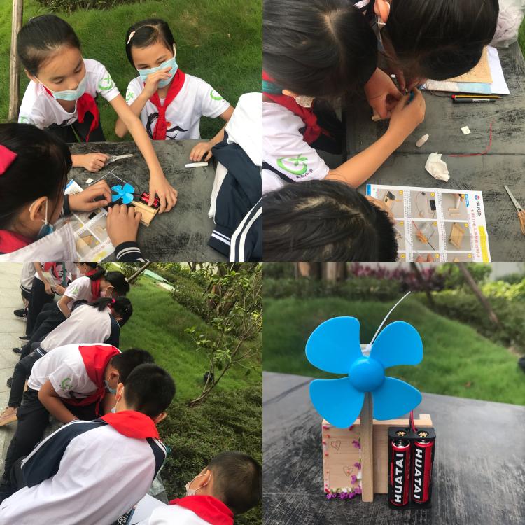 最后同學(xué)們?cè)谛↑S圃小學(xué)老師的示范下開始制作小風(fēng)扇實(shí)驗(yàn),學(xué)生們兩人一組合作制作,小組兩人一起研讀說明書,既分工合作又親密無間地快速將小風(fēng)扇組裝起來。組裝完風(fēng)扇之后,就開始創(chuàng)作詩(shī)歌,詩(shī)歌創(chuàng)作完后同學(xué)之間相互交流討論進(jìn)行自我修改。謝志穎主任和黎珍弟老師則針對(duì)學(xué)生修改后的作品進(jìn)行適當(dāng)?shù)狞c(diǎn)撥,進(jìn)行第二次的修改。最后讓同學(xué)們把詩(shī)歌抄在做好的小風(fēng)扇上。