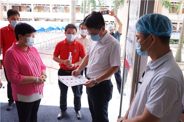 7月2日上午,順德區(qū)區(qū)委副書(shū)記、區(qū)政法委書(shū)記王勇、區(qū)教育局局長(zhǎng)閔樂(lè)萍一行到容山中學(xué)開(kāi)展高考防疫專項(xiàng)督查工作。容山中學(xué)校長(zhǎng)、考點(diǎn)主考區(qū)淑玲及相關(guān)行政陪同領(lǐng)導(dǎo)到校園相關(guān)高考功能場(chǎng)室進(jìn)行巡視。