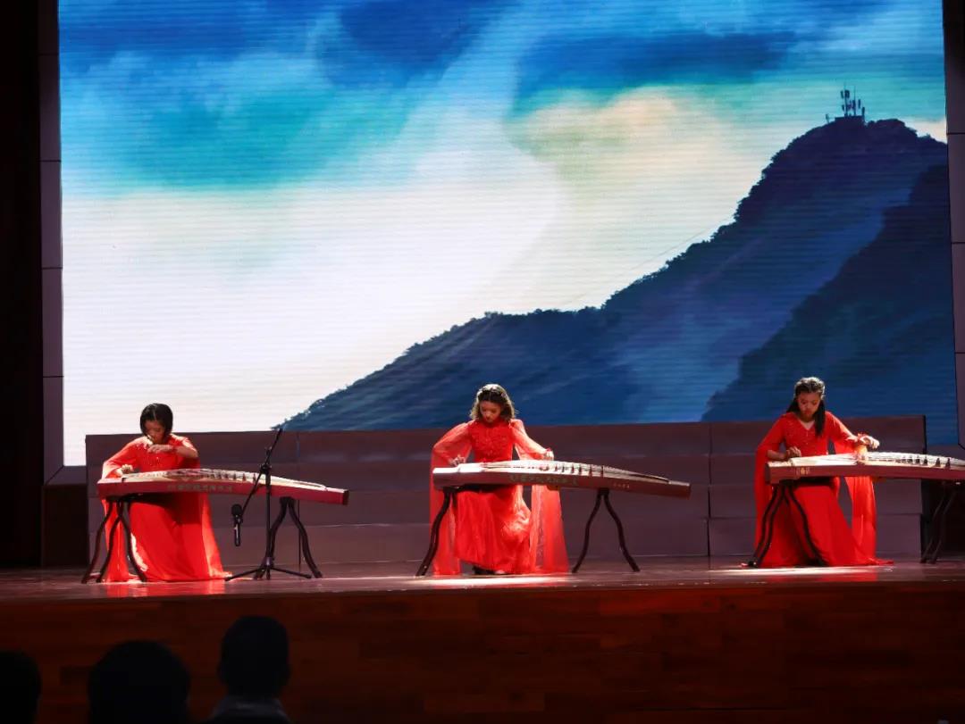 第二篇章是相知相愛一家親。古箏彈唱是我校的特色,趙穎蕊、黃婷、鄒鈺琪同學(xué)用細(xì)細(xì)的琴弦演繹廣東人民戰(zhàn)臺風(fēng)的故事,表現(xiàn)人民與自然作斗爭的不屈風(fēng)貌。