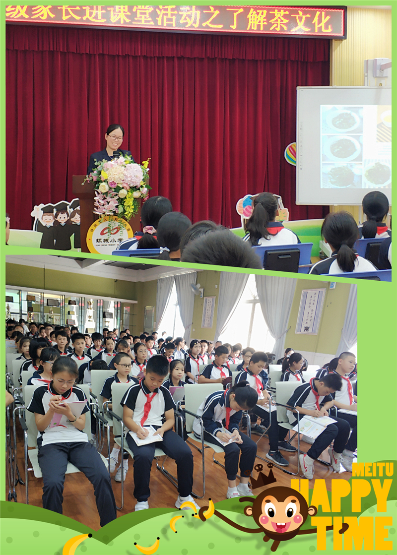 在這秋風(fēng)送爽,丹桂飄香的日子里,我校邀請了六年級家長代表廖碧華女士,為我們的孩子上一節(jié)專業(yè)的茶文化課。 廖碧華女士曾任環(huán)城小學(xué)義工隊(duì)長,她是福建人,從小就與茶結(jié)下了不解之緣,因而我們特意邀請她過來為我們上一節(jié)專業(yè)的茶文化課。廖女士準(zhǔn)備很充分,做了精美豐富的PPT,從茶的種類、茶的功效、茶葉名字的由來(背后都有吸引人的故事)以及如何沖泡各種的茶展開介紹。廖女士從各個(gè)方面和我們深入探討茶文化,還帶來了精彩的茶文化詩篇。廖碧華女士圖文并茂,語言精準(zhǔn)簡練為孩子授課,她還帶來各種茶葉樣本,讓孩子認(rèn)識茶葉,把茶豐富的文化內(nèi)涵呈現(xiàn)給大家,讓我們對茶有了深入全面的了解,真是收益匪淺。 讓家長走進(jìn)課堂,讓學(xué)生的視野更開闊,讓我們的學(xué)習(xí)內(nèi)容更豐富,這樣的形式是值得推廣的。感謝廖碧華為我們做精心的準(zhǔn)備,呈現(xiàn)一節(jié)精致豐富的專業(yè)課。 知識來源于生活又高于生活,學(xué)習(xí)就是為了更好地生活。讓我們的孩子都走進(jìn)生活好好學(xué)習(xí),提升生活品味,讓生活更美好!