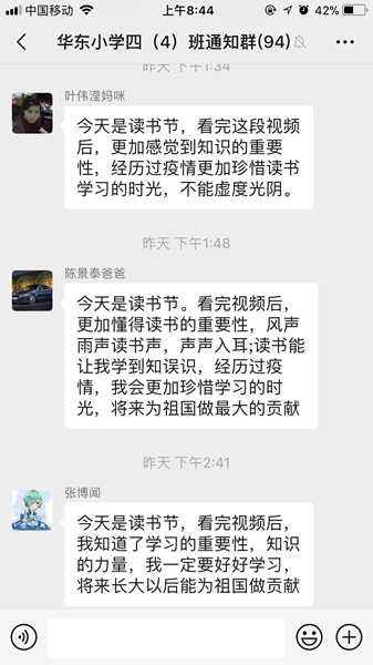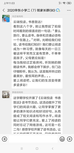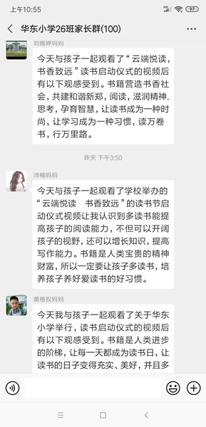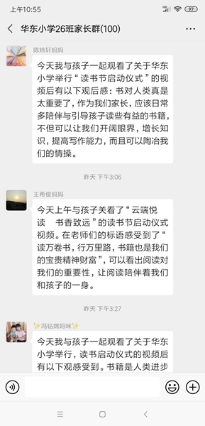各班家長們也在線上進(jìn)行讀書節(jié)互動(dòng)