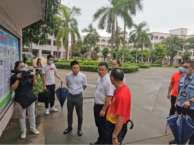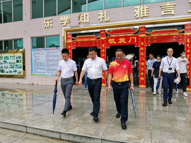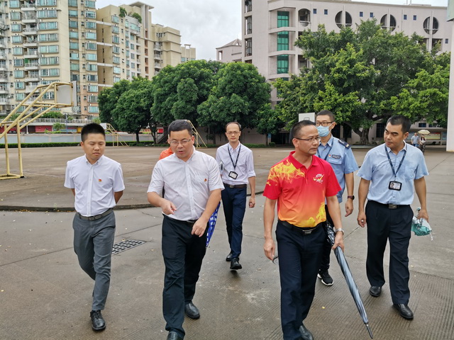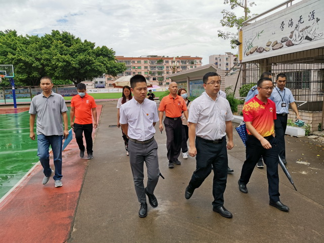 8月13日下午,勒流街道黨工委書記王光、宣傳文體局副局長郭永添同志以及相關(guān)單位領(lǐng)導,在教育局常務(wù)副局長王家倫同志的陪同下蒞臨我校對創(chuàng)文工作進行視察。