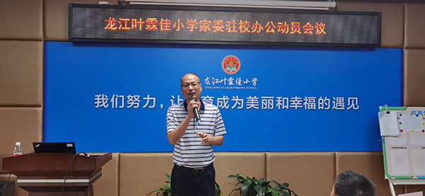 接著,由學(xué)校德育處主任廖美素向全體家委對(duì)“家校共建,協(xié)同管理”家委駐校辦公的實(shí)施方案進(jìn)行解讀,讓家長參與學(xué)校的監(jiān)督和管理工作有效推進(jìn)開放辦學(xué)、多元管理的家校共育工作。