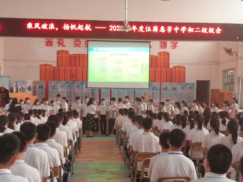 初二同樣展開了學(xué)生會議,由黃級長主持會議。首先,級長用充滿激情、抑揚頓挫、富有文采的語言開篇,提出開學(xué)以來學(xué)生們的表現(xiàn),同學(xué)們的自主學(xué)習(xí)習(xí)慣有所提升;分析上學(xué)期期末各班的成績,表揚了上學(xué)期期末考試總分獲得年級前三十名的同學(xué)和進(jìn)步較大的學(xué)生,并給獲獎同學(xué)頒獎。頒獎結(jié)束后,主任和級長對同學(xué)們寄予新學(xué)期新要求,勉勵同學(xué)們牢牢把握學(xué)習(xí)的機(jī)會,繼續(xù)加強學(xué)生良好行為習(xí)慣的養(yǎng)成。