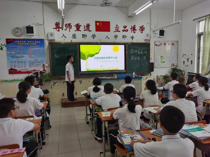 為推進(jìn)國家通用語言文字的規(guī)范和普及,經(jīng)國務(wù)院批準(zhǔn),從1998年起,每年9月份第三周為“全國推廣普通話宣傳周”。推廣周期間,順德區(qū)杏聯(lián)初級中學(xué)以“同講普通話,攜手進(jìn)小康”為主題,開展推廣普通話主題班會(huì)、優(yōu)秀推廣普通話手抄報(bào)作品展、經(jīng)典誦讀活動(dòng)、致敬抗疫英雄演講活動(dòng)等一系列推廣宣傳。