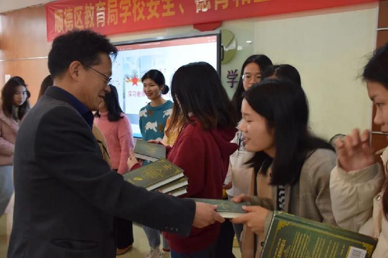 歡送會(huì)接近尾聲,趙校長(zhǎng)給獲得“優(yōu)秀實(shí)習(xí)生”的老師頒發(fā)證書(shū)并留下合影。同時(shí)給二十五位實(shí)習(xí)老師都贈(zèng)送了一本書(shū)《給老師們的建議》,趙校稱(chēng),“未來(lái)教育家”這五個(gè)字概括了我對(duì)你們的厚望,也希望你們?cè)谌蘸蟮墓ぷ髦锌梢阅軌蚰媪髦鄙?,活出燦爛的人生。