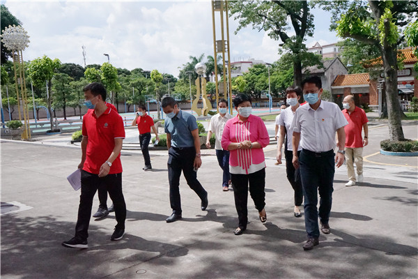 7月2日上午,順德區(qū)區(qū)委副書記、區(qū)政法委書記王勇、區(qū)教育局局長(zhǎng)閔樂萍一行到容山中學(xué)開展高考防疫專項(xiàng)督查工作。容山中學(xué)校長(zhǎng)、考點(diǎn)主考區(qū)淑玲及相關(guān)行政陪同領(lǐng)導(dǎo)到校園相關(guān)高考功能場(chǎng)室進(jìn)行巡視。