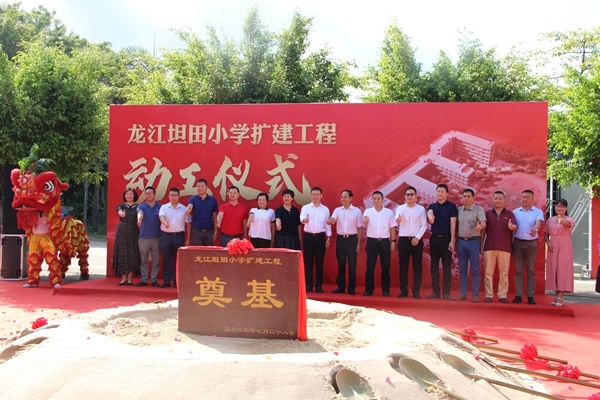 百年大計,教育為先。2020年7月28日上午,龍江坦田小學(xué)擴(kuò)建工程項目動工儀式隆重舉行,龍江鎮(zhèn)黨委書記何春云,龍江鎮(zhèn)人大主席林定基,龍江鎮(zhèn)黨委副書記賴朝輝,龍江鎮(zhèn)黨委委員、鎮(zhèn)教育局局長歐陽伯洪,龍江鎮(zhèn)副鎮(zhèn)長盧國漢,龍江鎮(zhèn)副鎮(zhèn)長劉振峰,原順德區(qū)人大常委會副主任張教邦,龍江總商會會長、廣東南興天虹果仁制品有限公司董事長鄧惠娟,中國聯(lián)塑集團(tuán)控股有限公司副總裁宋科明,志達(dá)集團(tuán)創(chuàng)始人、志達(dá)教育慈善基金主任韓麗容,順德區(qū)政協(xié)委員、米蘭匯家居展貿(mào)中心董事長廖錦添,廣東鴻基家具實(shí)業(yè)有限公司副總經(jīng)理陳蓮芳,佛山市人大代表、佛山市順德區(qū)建億建筑工程有限公司董事長鄧國福,佛山市盈悅環(huán)保工程有限公司總顧問鄧健光,東涌居委會書記、主任劉海祥,坦西村委會書記、主任張展熾以及龍江鎮(zhèn)相關(guān)辦局負(fù)責(zé)人、東涌、坦西兩委成員、各級人大代表、政協(xié)委員、社會賢達(dá)參與了這次動工儀式。
