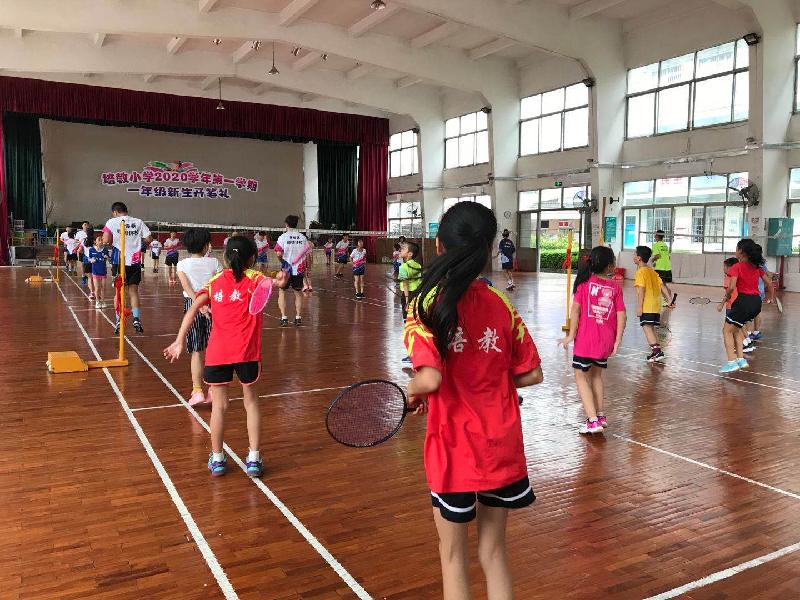 為弘揚體育精神,普及羽毛球知識,豐富校園生活,順德體校開展了“羽毛球進校園,體育公益培訓活動”。2020年9月19日下午,順德區(qū)體校組織教練和學員走進倫教培教小學負責輸送專業(yè)羽毛球技術(shù)和比賽經(jīng)驗交流。首先,體校的教練們帶領(lǐng)學生進行熱身訓練,并呼吁大家養(yǎng)成良好的運動前熱身的習慣,以保護關(guān)節(jié)肌肉。熱身結(jié)束后,教練結(jié)合小學生的理解能力,用幽默生動的語言為學生講解羽毛球運動中的動作要領(lǐng),并逐一規(guī)范各個基本動作。課堂上氛圍融洽,學生學習興趣高漲,孩子紛紛愛上了羽毛球這項運動。隨后組織不同年齡階段的學生進行比賽,通過比賽發(fā)現(xiàn)問題并且給予建議。最后,體校隊員代表與培教小學代表進行表演示范賽??罩械挠鹈驎r而像輕盈的小鳥在空中飛翔,時而像一道道閃電利箭在空中來回激戰(zhàn),讓人眼花繚亂,目不暇接。此次公益羽毛球進校園活動,不僅給孩子們帶來羽毛球運動的樂趣,同時激發(fā)了師生投身到羽毛球運動的積極性。在專業(yè)教練的指導(dǎo)下,更多師生掌握了規(guī)范正確的動作,為培教小學的羽毛球運動起到了扎實有效地推動作用。