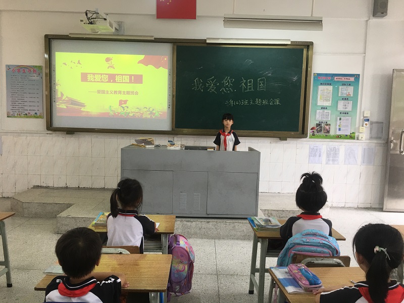 “五星紅旗迎風(fēng)飄揚(yáng),勝利歌聲多么響亮!歌唱我們親愛(ài)的祖國(guó),從今走向繁榮富強(qiáng)??????”同學(xué)們深情地歌頌偉大的祖國(guó),本次班隊(duì)課也拉開(kāi)了帷幕。