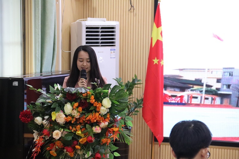 儀式的第三個議程,由工作室成員代表林子楚老師作表態(tài)發(fā)言。發(fā)言中,她首先感謝學(xué)校領(lǐng)導(dǎo)、科組老師們的支持、幫助與關(guān)愛,讓年輕教師能勇往直前、無懼風(fēng)浪;其次,她希望年輕教師能珍惜和把握寶貴機(jī)遇,對自己嚴(yán)要求、多研學(xué)、實操練,向名師靠近、取經(jīng);最后,她有信心各工作室成員能在名師的指導(dǎo)下努力發(fā)展自己,形成合力,為倫小的教育教學(xué)水平提升新臺階而貢獻(xiàn)自己的光和熱。