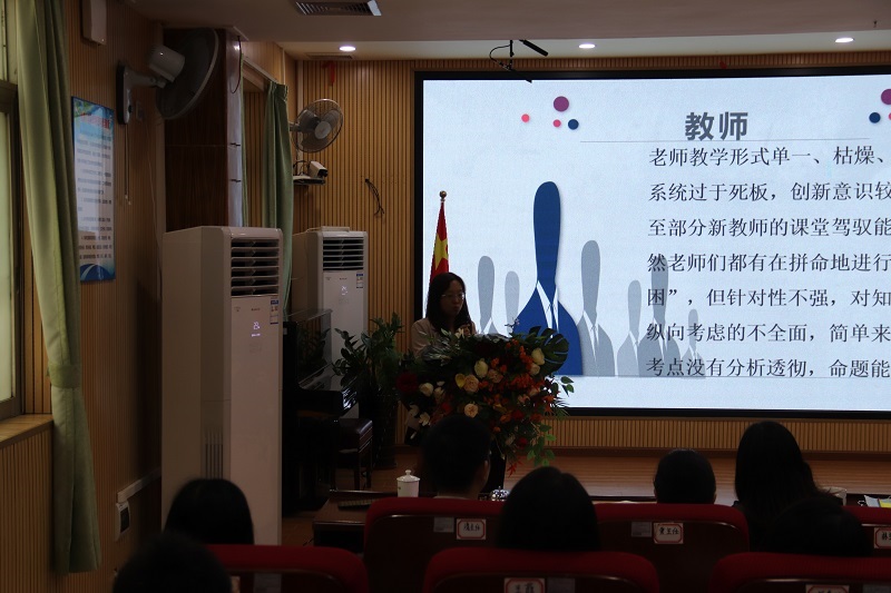 儀式的第二個議程,先后由謝曉芳、譚梅峰、劉曉丹、曾錦源、梁龍歡、李麗敏、黃惠敏七位工作室主持人作工作室建設(shè)匯報。他們針對學(xué)校的發(fā)展、青年教師的培養(yǎng)以及工作室的建設(shè),分別從研究主題及背景、研究目標(biāo)、研究步驟、團(tuán)隊成員簡介與分工、研究成效、經(jīng)費預(yù)算這六大方面進(jìn)行匯報,同時以高瞻的理念、課題的研究以及科學(xué)的發(fā)展規(guī)劃,為大家描繪了一幅幅美麗的藍(lán)圖。