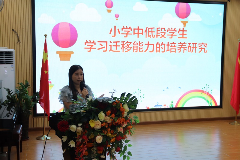 儀式的第五個議程,由郭麗華校長進(jìn)行發(fā)言。她指出,搭建和成立名教師、名班主任這兩個方向的工作室,是為了更好地搭平臺、促發(fā)展、培名師。郭麗華校長還分享了名校長工作室成員的經(jīng)歷,借此向各工作室成員的自身發(fā)展提出相應(yīng)的要求并寄予厚望:成員應(yīng)積極主動地參與工作室各項工作和活動,并要結(jié)合工作實際,做到善思、善言、善改、善行,爭當(dāng)一名有智慧的名師。最后郭校長表態(tài),學(xué)校將全力以赴地支持工作室的活動,同時也祝愿工作室的活動能富有成效、綻放光彩。