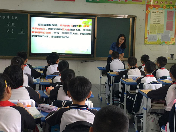 黃娟老師執(zhí)教的《四季之美》一課,以古詩導(dǎo)入課文,通過朗讀去引導(dǎo)學(xué)生感受四季之美,讓學(xué)生在讀中感悟,讀中探究。在拓展練習(xí)中,黃老師循循善誘,引導(dǎo)學(xué)生抓住文中的表達方法,采用動靜結(jié)合的寫景方法學(xué)生展開想象,仿句練說,提高了學(xué)生語言表達和想象能力。