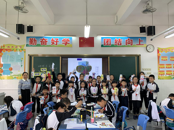 美術(shù)方面,趙金鈴老師為大家?guī)磔p松、童真、有趣的美術(shù)課《蝴蝶落我家》,世是一堂以蝴蝶為主線,從平面蝴蝶變?yōu)榱Ⅲw的手工制作課。本課是集“造型表現(xiàn)”和“設(shè)計應(yīng)用”一體的內(nèi)容,趙老師全程都進(jìn)行給予式的講解,并及時提問,充分體現(xiàn)了學(xué)生的主動性。從學(xué)生的動手制作蝴蝶部分實(shí)現(xiàn)課堂上教學(xué)的重點(diǎn),無形中突破難點(diǎn),讓學(xué)生在合作中體驗(yàn)與同伴學(xué)習(xí)的快樂,團(tuán)結(jié)互助,學(xué)會分享,發(fā)展學(xué)生的感知創(chuàng)作思維。