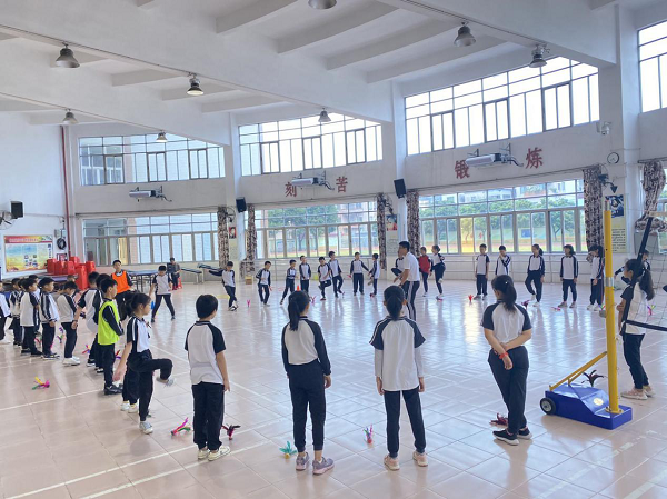 體育方面,田濤老師的授課內(nèi)容是《腳內(nèi)側(cè)踢毽球》,采用學(xué)生喜愛的游戲形式進(jìn)行導(dǎo)入和熱身,充分調(diào)動學(xué)生學(xué)習(xí)的積極性和注意力。本課環(huán)節(jié)設(shè)計合理層層遞進(jìn),“手持球接力”“踢球入圈比多”等游戲貫穿課程,帶動起學(xué)生們參與課堂的積極性。在練習(xí)中以學(xué)生為主體,積極引導(dǎo)學(xué)生主動思考,創(chuàng)設(shè)小組合作探究解決問題,增加練習(xí)組數(shù),讓學(xué)生能充分的體驗(yàn),真正讓學(xué)生體驗(yàn)到體育帶來的樂趣。