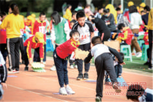 啟智學(xué)校學(xué)生與普校學(xué)生正在進(jìn)行“10 米齊心協(xié)力”比賽。/珠江商報(bào)記者林安迪攝