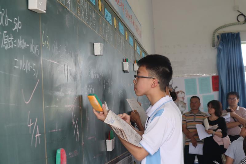 活動首先由李小鵬老師和陳兆華老師分別展示了一節(jié)課。李小鵬老師在初二(12)班展示了一節(jié)以 “提公因式法”為教學內(nèi)容的基于數(shù)據(jù)的教學課。李老師通過課前小測所反映的學生短板,對基本概念進行了詳細解讀。并通過課中小組合作、上板展示等形式,發(fā)現(xiàn)學生的學習困惑點,及時調(diào)整教學策略,突破教學重難點知識。最后,還通過課后小測進一步了解診斷學生對新知識的掌握情況。