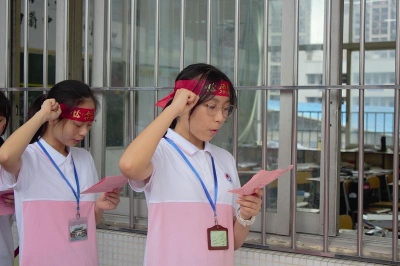 繼而,初三(10)班余芷琪、初三(6)班肖田田同學(xué)帶領(lǐng)全體同學(xué)進行宣誓。