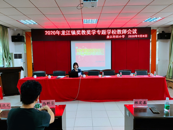 在第36個(gè)教師節(jié)即將到來(lái)之際,在鎮(zhèn)委鎮(zhèn)政府的關(guān)懷下,繼鎮(zhèn)2020年度獎(jiǎng)教獎(jiǎng)表彰大會(huì)之后,龍江坦田小學(xué)也對(duì)本學(xué)年度為龍江教育發(fā)展、我校教育教學(xué)工作做出突出貢獻(xiàn)的老師們進(jìn)行表彰。9月8日上午,我校召開(kāi)了2020年度龍江鎮(zhèn)獎(jiǎng)教獎(jiǎng)學(xué)專(zhuān)題學(xué)校教師會(huì)議,龍江鎮(zhèn)人大主席林定基、人大辦主任譚浩添、東涌居委會(huì)黨委書(shū)記劉海祥、坦西居委黨委書(shū)記張展熾、東涌居委會(huì)黨委副書(shū)記鄧熾棠、坦西居委會(huì)黨委委員、人大代表馬群芳女士、順德區(qū)人大代表劉達(dá)文、張佳明,以及我校全體教師參加了本次會(huì)議。