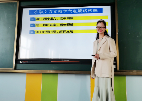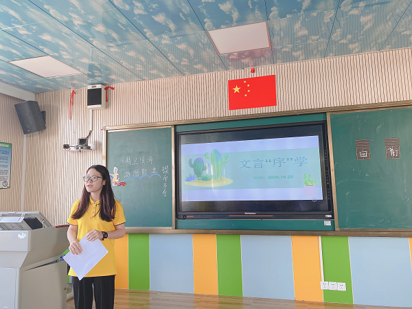 緊接著,北海小學(xué)甘容老師、梁毅鈺老師作代表,分別圍繞“小學(xué)文言文教學(xué)六點(diǎn)策略初探”和“文言‘序’學(xué)”這兩個(gè)主題分享教學(xué)心得。本次分享起到了一個(gè)拋磚引玉的作用,為接下來的小古文教學(xué)提供了一個(gè)新的思考方向。