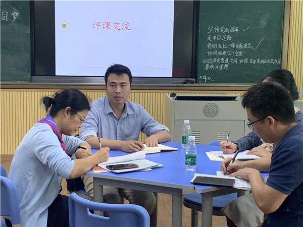 接著,陳惠南紀(jì)念中學(xué)董華玲和青云初級中學(xué)潘嘉銘老師分別同臺獻(xiàn)技為全體老師展示《8.2共圓中國夢》的公開研討課。董華玲老師的課堂教學(xué)立足點(diǎn)高,讓學(xué)生從國家、社會和公民等多個(gè)層面去感知中國夢實(shí)現(xiàn)的方式,激發(fā)同學(xué)們做個(gè)自信的中國人。課堂師生互動活躍且生動,充分地發(fā)揮學(xué)生的參與熱情,情感態(tài)度價(jià)值觀的落實(shí)呈螺旋式上升,讓學(xué)生形成強(qiáng)烈的政治認(rèn)同。