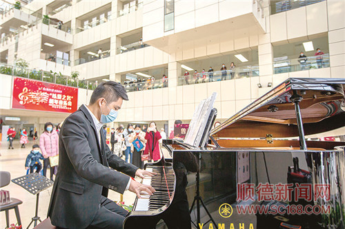 現(xiàn)場,音樂專業(yè)老師、南醫(yī)大順德醫(yī)院醫(yī)護人員、德勝幼兒園學(xué)生等音樂“發(fā)燒友”通過鋼琴演奏、獨唱、合唱等形式,為現(xiàn)場聽眾送上了一場音樂盛宴?!段覑勰阒袊贰蹲詈玫奈磥怼贰吨聬埯惤z》《今宵多珍重》《夜空中最亮的星》多首歌曲的有序“切換”,吸引了不少就診患者駐足欣賞。