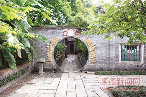 有的洞門用色豐富、立體感強(qiáng)、中西合璧。如船廳旁邊的連廊洞門采用西洋羅馬柱式造型,歐式洞門的上方半圓拱形中,或用灰塑勾勒花鳥,或畫上傳統(tǒng)國畫,形成一道獨(dú)特的風(fēng)景線。