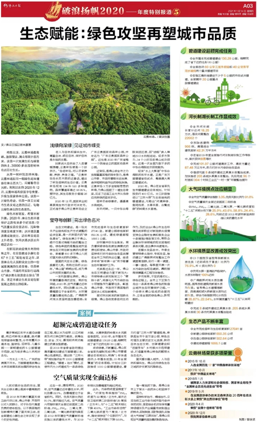 在全面建成小康社會和“十三五”規(guī)劃收官之年,這是佛山向人民群眾交出的一份誠意滿滿的生態(tài)答卷,也是佛山踐行“綠水青山就是金山銀山”理念,堅定不移走生態(tài)文明創(chuàng)新發(fā)展之路結(jié)出的碩果。