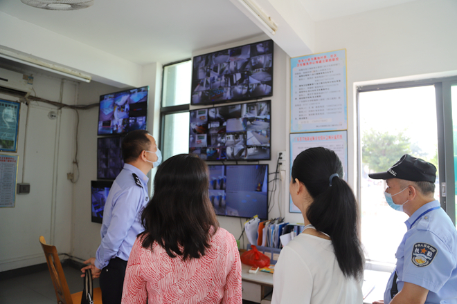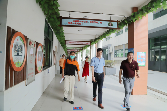 檢查組實(shí)地查看校園環(huán)境和文化氛圍創(chuàng)設(shè)情況